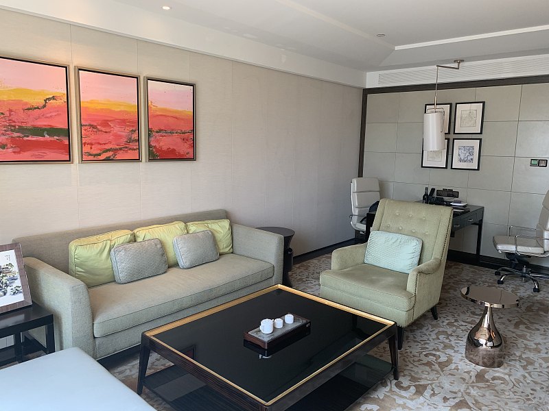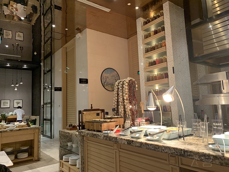 下午两点半,一共8位住客在大堂集结。Elisa客串导游,由于是酒店第一天开团,前厅经理Yoyo也一并陪同监工~先用了10分钟左右带我们走了走酒店的公共区域。值得一提的事儿,早餐的户外区域,原本不是计划建酒店的。当时计划是为了建造业主圣和的办公楼。挖地基的时候偶然发现了古城场的遗址,这才没办法只能停止了原计划。所以酒店早餐外,还留有那块城墙,并配有介绍。